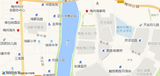 展开梅州市福长路与芹洋西路辅路交叉口东北40米